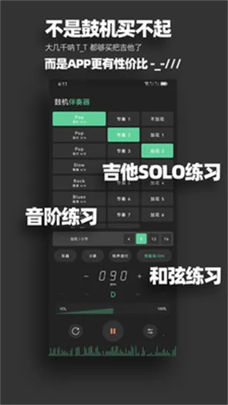 3、支持吉他、贝斯、鼓等多种乐器练习,提升综合技能。