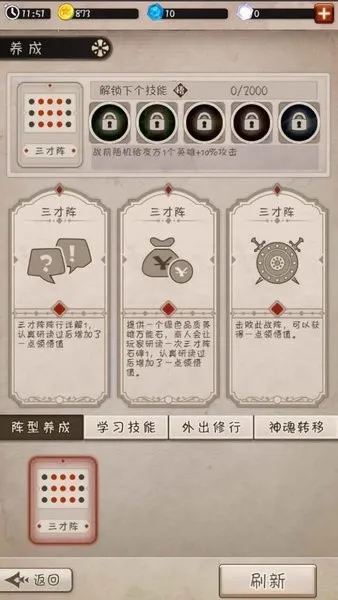 2、策略玩法多样,通过为英雄学习不同被动技、装备宝物,选择合适阵型等制定策略。