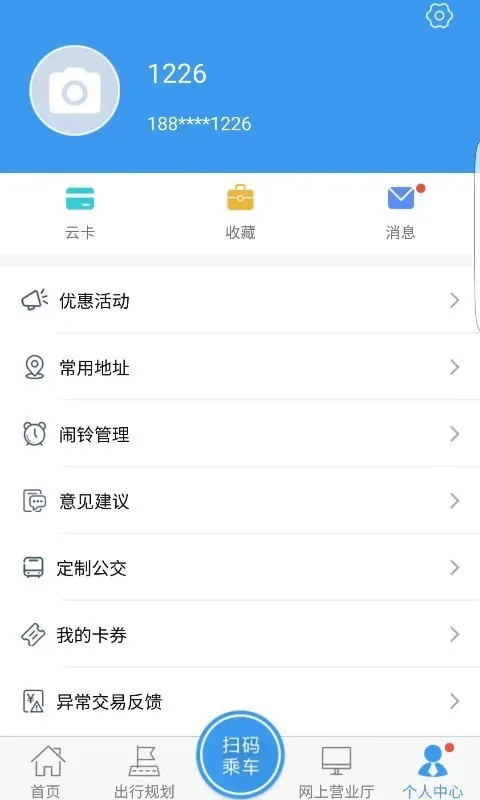 4、月城公交安卓版手机版特色众多,支持云卡扫码乘车有折扣,还能收藏常用线路,服务大厅可获取出行资讯 。