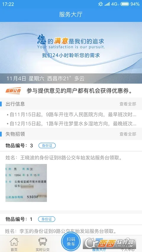 月城公交安卓版是西昌月城公交公司打造的出行服务平台。具备实时公交、扫码乘车等功能,提供线路、换乘查询及定制班车服务,支持多种特色功能,更新迭代优化体验,助用户便捷出行 。