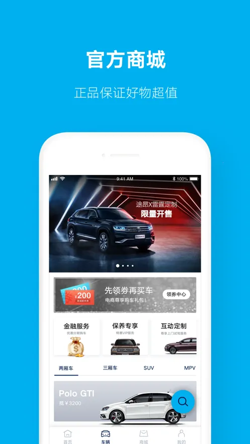 1、一站式购车服务,线上预约试驾、个性化车型配置、贷款计算等工具,简化购车流程。