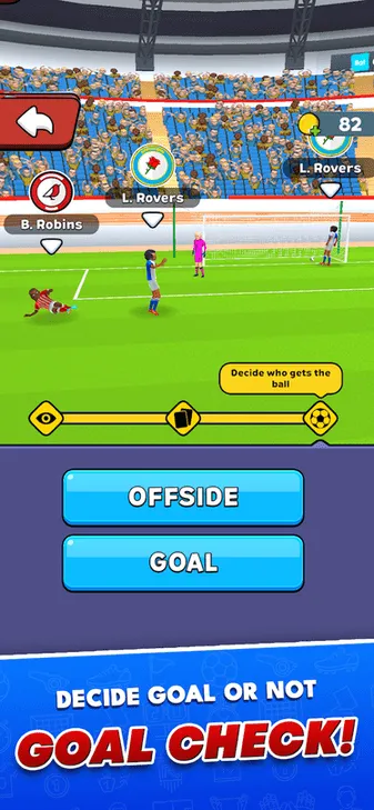 4、操作与玩法轻松:手指点击操作,玩法轻松有趣,玩家在尽享欢乐的同时,需充分了解足球规则,以更好地进行判定。