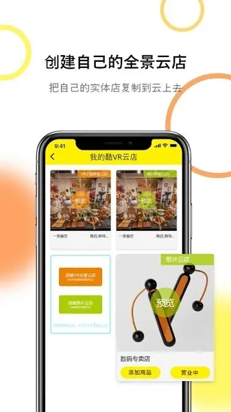 2、功能体验全:它是专业的全景VR服务平台,提供有购物功能的全景制作软件,能进行全景拍摄制作,还可把实体店复制到云上,创建自己的云商店,添加商品售卖。