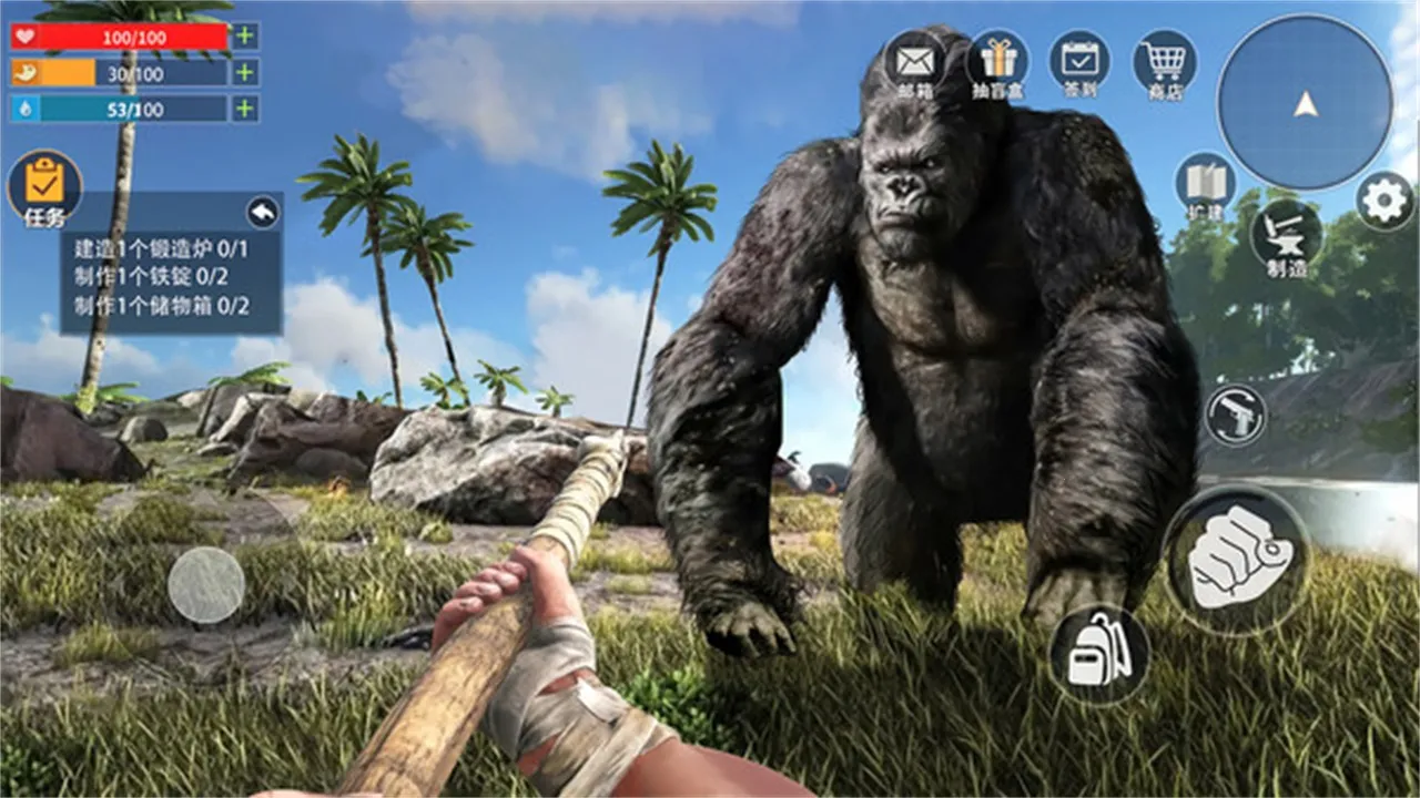 2、多样玩法体验:前期以采集和建造为主,收集材料锻造武器、建造物品;随着进程开启更多挑战,还能开垦农田、种植作物等。可自由收集史前动物,打造强大队伍。