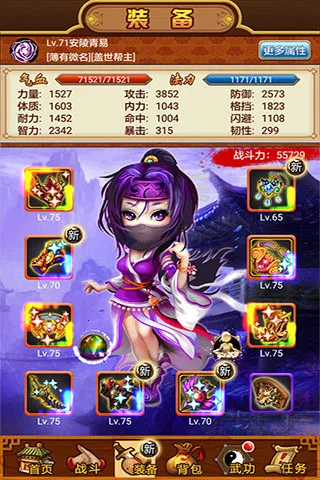 4、自由养成体验:玩家可操作角色东方未明的发展方向,不同选择造就不同结局,如称霸武林盟主、专精一代宗师等。游戏有RPG养成交替模式,开场初入洛阳为RPG模式,中毒入逍遥谷后变为养成模式,还增加了多种小游戏。