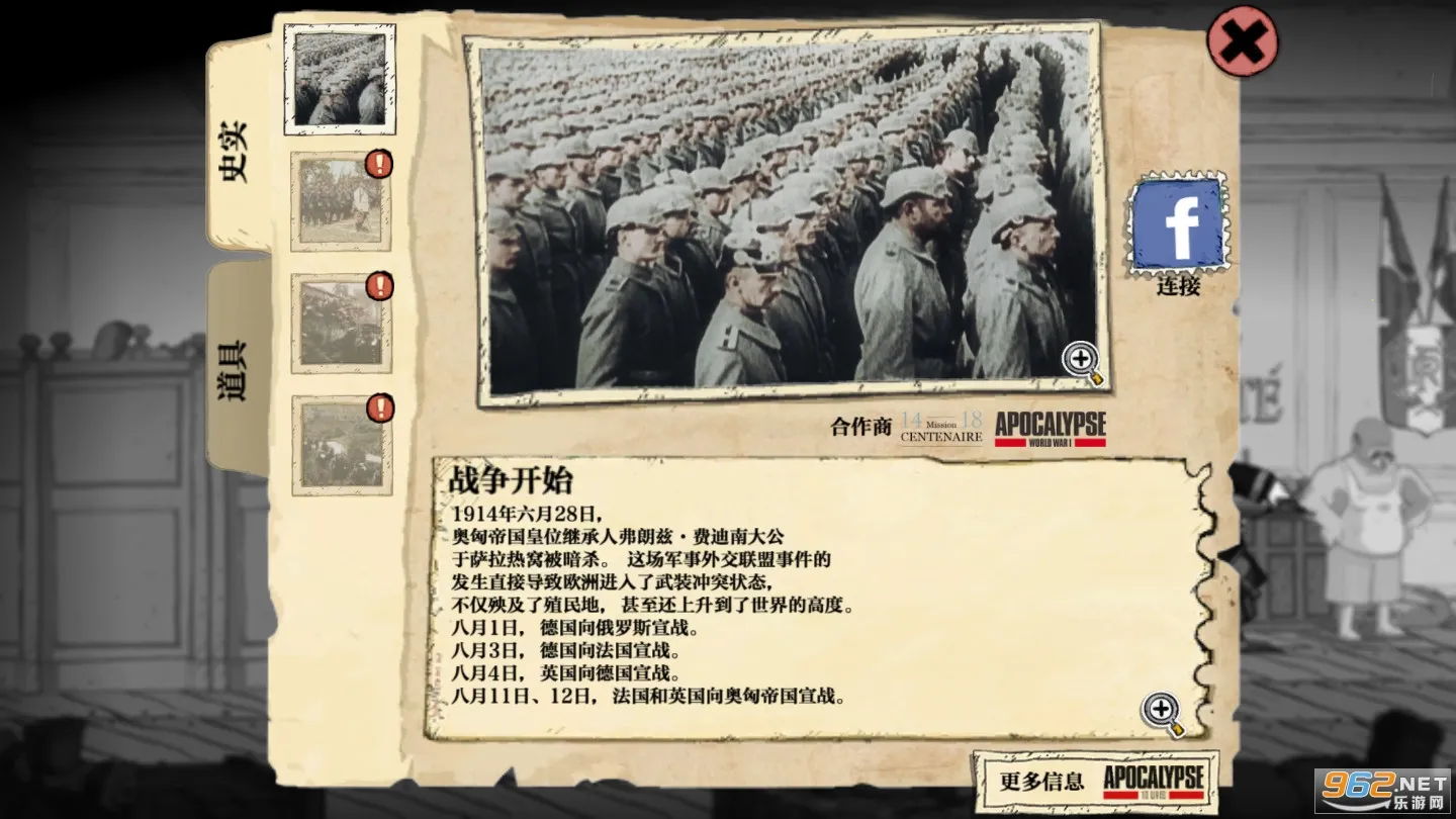 2、独特艺术风格:这是一款可游玩的图像小说,有着独特的气氛和艺术风格,以漫画风格呈现画面,用独特色调带领玩家回到一战历史中。