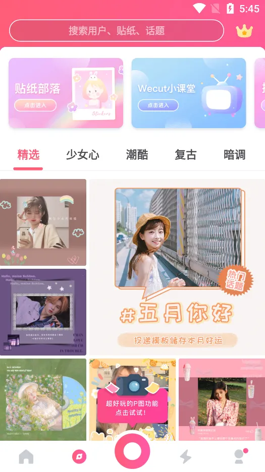 3、软件拥有海量素材模板,包括百搭图片模板、多风格素材库、海量贴纸库等,满足各种修图需要。还有创意p图教程课堂,汇集热门修图教程。