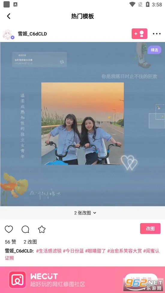 4、微咔Wecut具备多样特色功能,如动态贴纸自动人脸识别,支持在线DIY制作动态贴纸;自动美容功能带来自然美颜效果。此外,它还有好玩的多元化图片分享社区,能让用户发现超火修图玩法。该软件适配安卓系统,老旧机型有适配历史版本,新机型可体验最新功能。安装包大小适中,安装流程简单,助您快速上手成为修图达人。