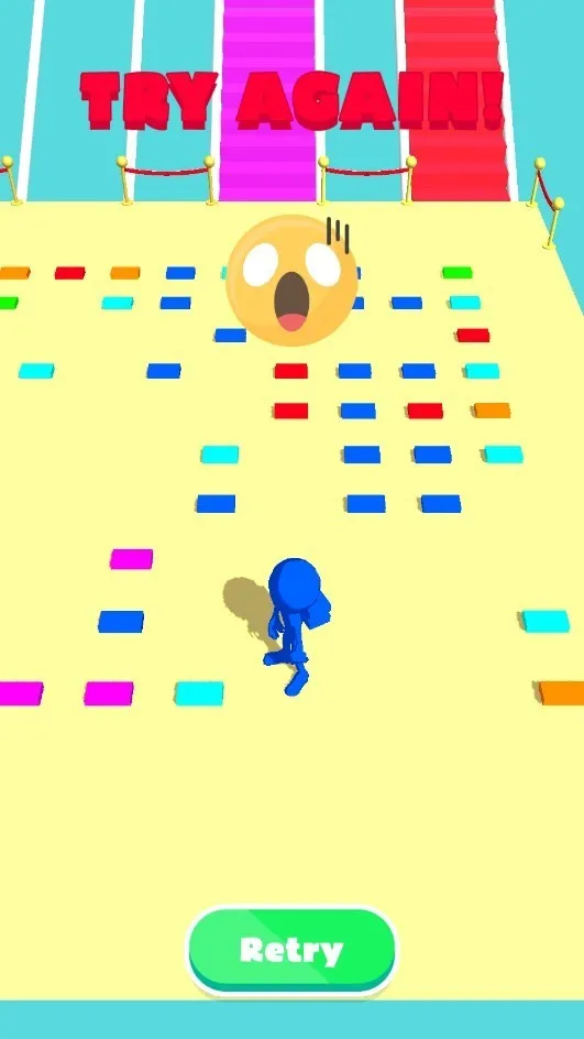 4、多人竞技乐趣:支持多人在线竞技,充满卡通风格。玩家可选择角色比赛,通过收集堆叠颜色建造桥梁赛跑,率先到达终点获胜,关卡中的多人战斗趣味十足。
