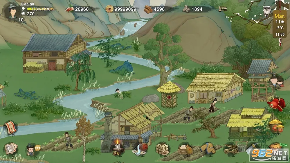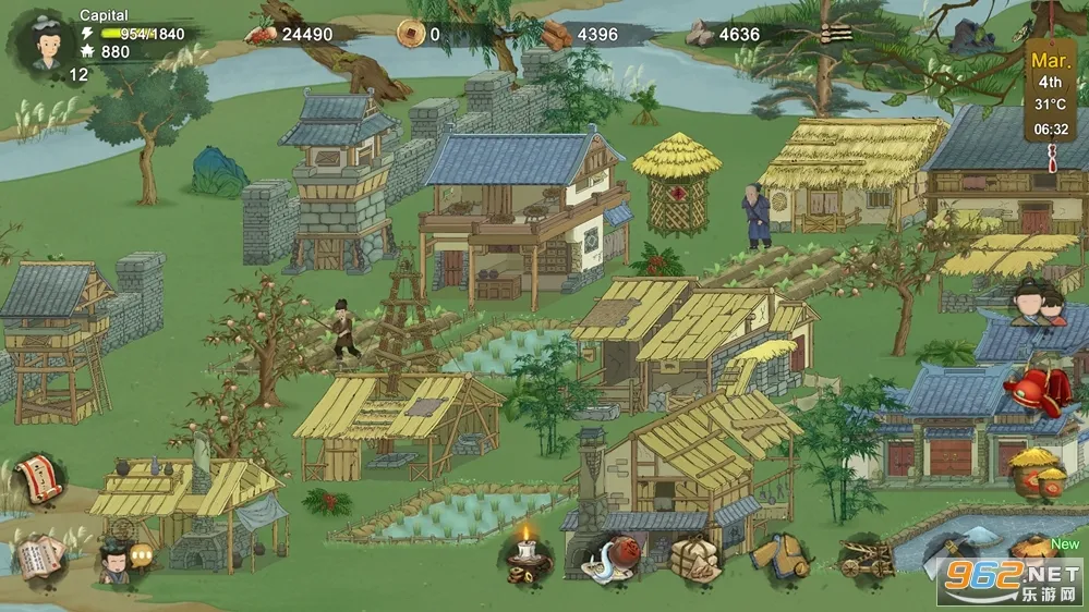 3、高度还原古代风貌:高度还原古代江南风貌,建筑风格、村民打扮、环境山水等仿佛停留在唐朝末年时期,让玩家体验真实的古代生活,如日出而作、日落而息,解决温饱、采集资源、分配劳力、发展人口等。