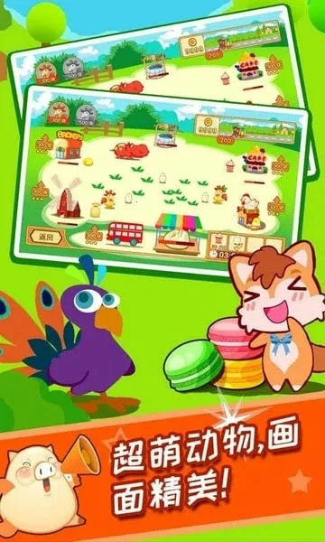 2、喂养可爱小动物:可以喂养小鸡、孔雀和绵羊等多种可爱的小动物,这些动物造型活泼可爱,能让孩子玩得开心,还能帮助孩子轻松认知生活中常见的动物。