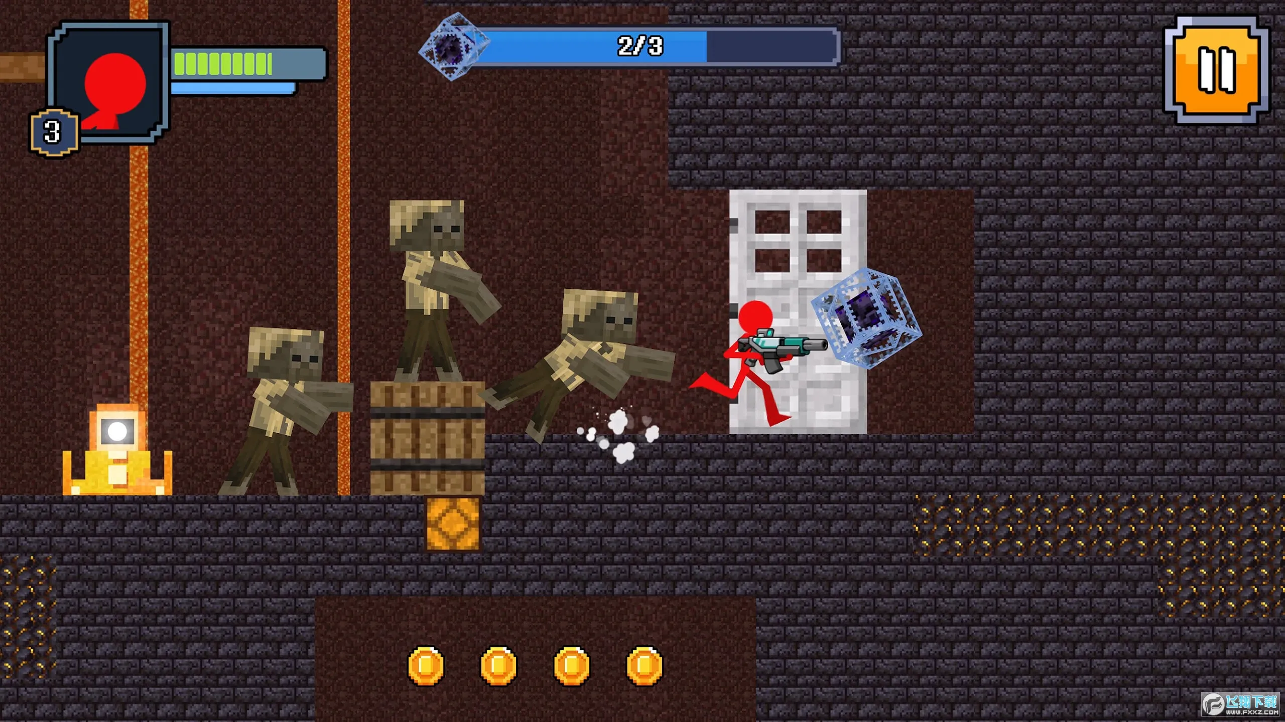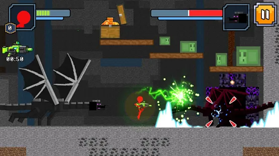 1、独特风格:采用像素风格制作火柴人角色形象,带来不一样的视觉感受和游戏玩法,搭配炫酷特效,画面精美且充满趣味性。