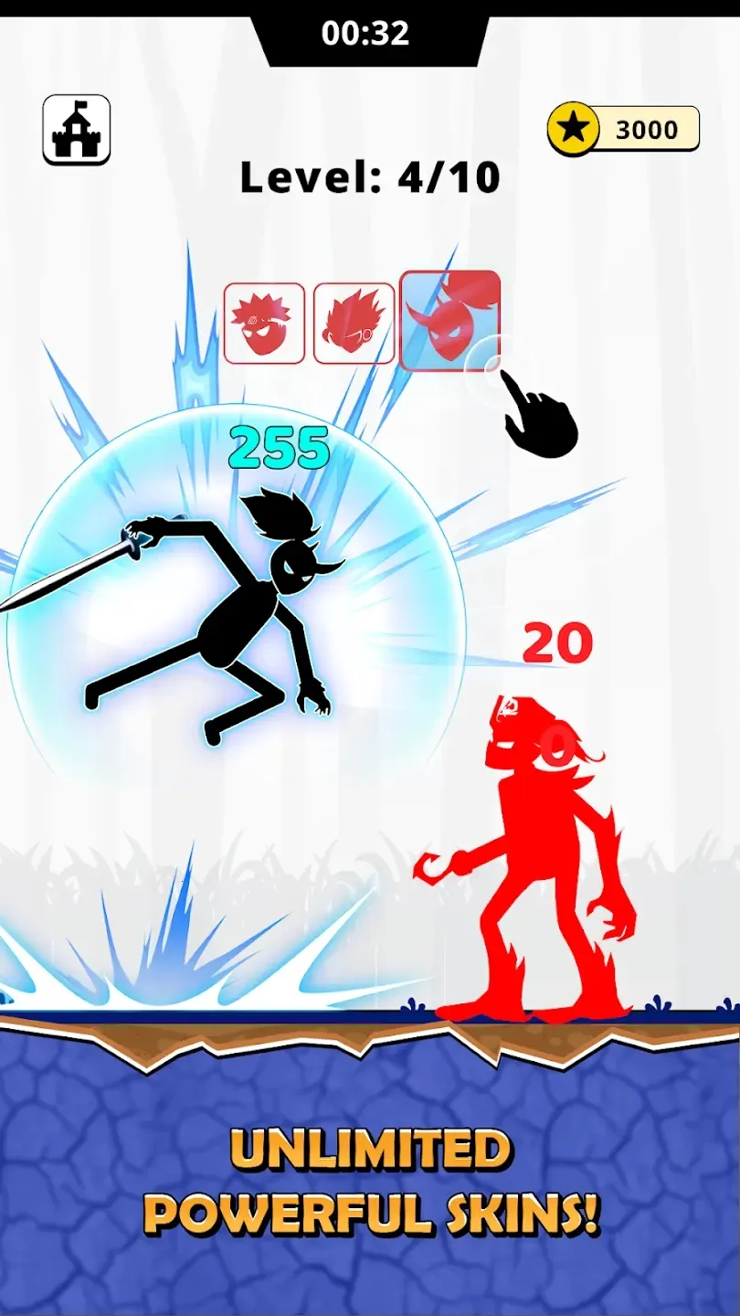 2. 能随意点击更换精美皮肤,简单的皮肤变化可形成全新视觉效果,装扮后还有独特技能特效和进攻动作,趣味性十足。