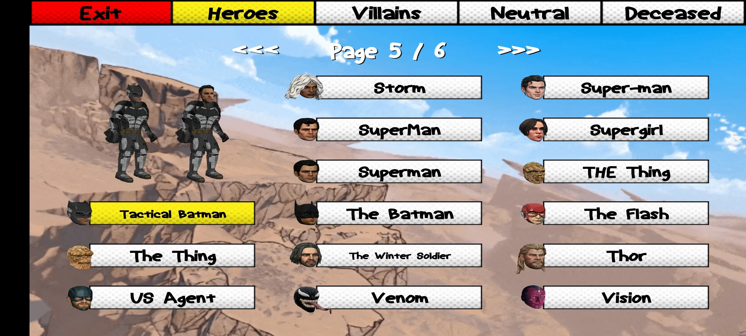 1. 融合漫威宇宙与无敌少侠动画经典角色,操控蜘蛛侠、钢铁侠等漫威英雄与无敌少侠、机器侠等展开对决,体验跨次元格斗乐趣。