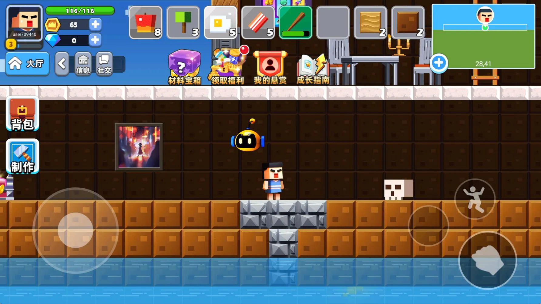 1. 玩法丰富多样。能收集木头石头等材料做家具、造武器、建家园,还能联机和朋友挖宝探险,或者单刷大乱斗用自制装备打架。