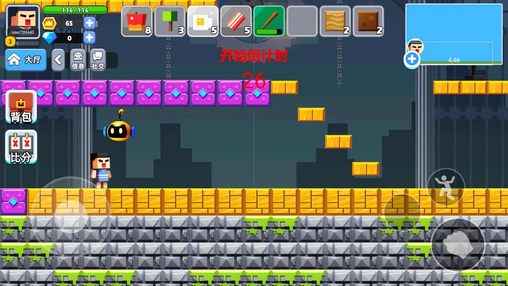 3、正式进入后左边控制角色的移动,右边是攻击、跳跃以及使用道具的按钮。