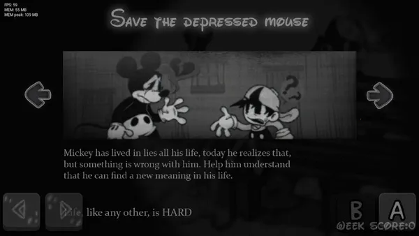 嘿,喜欢音乐节奏游戏的朋友们看过来!如果你在找“周三不忠夜废弃曲目”相关内容,那这款周三夜重制版游戏绝对值得一试。它是一款独特的音乐节奏手游,有着复古黑白画风,能带来超有风格的视听享受。在游戏里,你扮演音乐冒险者闯神秘城堡。要跟着律动节拍精准点击滑动屏幕,与音乐完美同步,挑战高分和连击纪录。它有复古像素画风、经典人物形象,能给你原来的街机体验。还能解锁多种模式玩法,难度提升乐趣更多。跟随不同节奏音乐挑战,完成任务能得奖励。场景多变,歌曲种类丰富,能让你消磨时间,沉浸在音乐冒险中。而且全新恶搞米老鼠模组,视觉享受超棒。快来试试,让你感受音乐的无限魅力,享受这场独特的音乐闯关之旅!