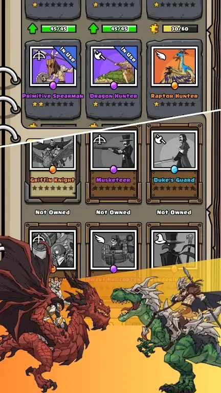 2、享受抽卡收集体验:通过战役解锁抽卡系统,收集不同时代的特征物品,上阵可获额外加成属性,增添收集乐趣。