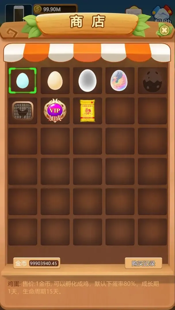 2、游戏中的禽鸟种类多样,有鸡、鸭、鹅等普通家禽,还有孔雀、凤凰等稀有禽类,能让玩家体验不同的养成乐趣。而且成年禽鸟有几率下蛋,蛋又能孵化成雏鸟,循环扩大养殖规模。