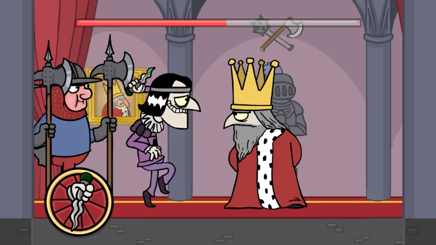 2、游戏特色鲜明,有节奏摇摆、魔性的国王行走动画,还有另类搞笑且感人的剧情,国王有上千种脑洞大开的死法,刺客角色形象也五花八门。