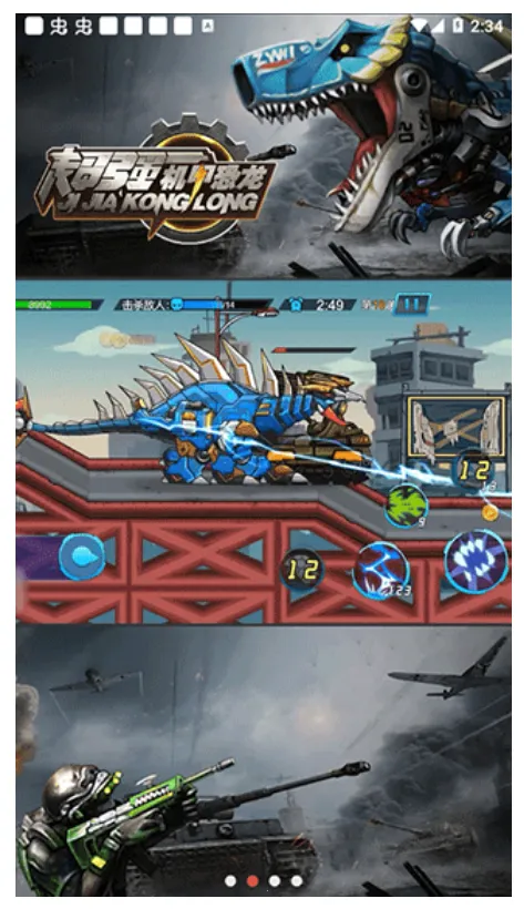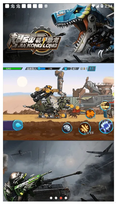 2、机甲选择多样:游戏中有七种不同的机甲恐龙,每款都有独特战斗能力和属性,如机甲三角龙属性均衡,适合新手;机甲霸王龙攻击突出等。玩家能根据需求选择,还可通过组装零件、强化升级让机甲变得更强。